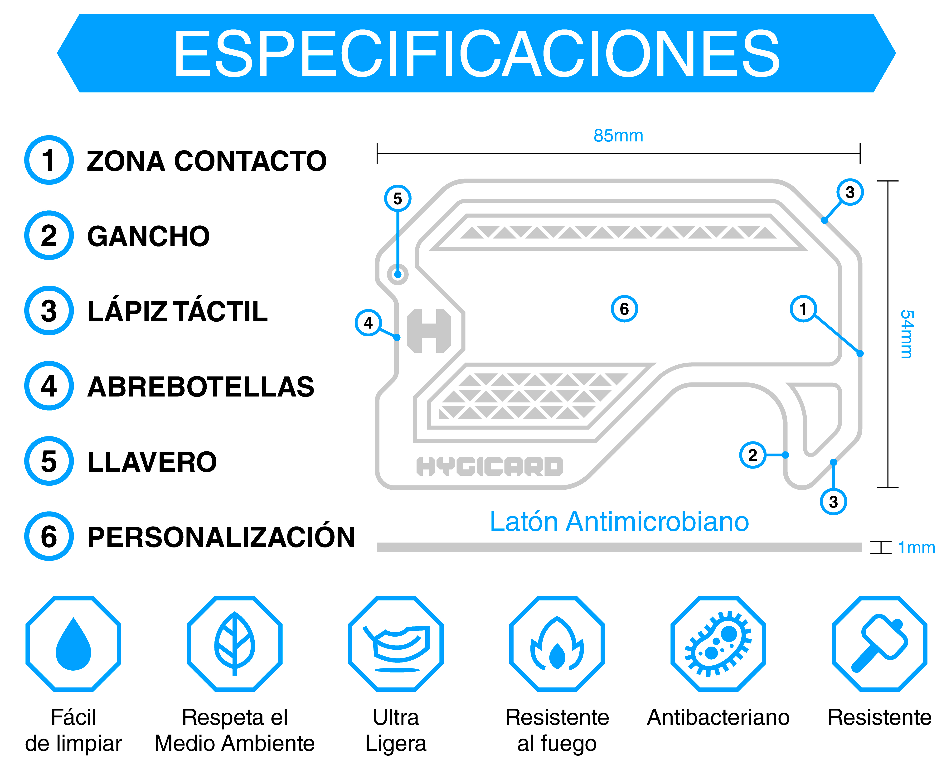 HYGICARD está hecho de latón antimicrobiano, que es ampliamente conocido por tener propiedades antimicrobianas naturales, por lo que los gérmenes y las bacterias no se adhieren bien al metal. ¡Sus propiedades han sido reconocidas por la EPA (Agencia de Protección Ambiental)! También es ampliamente utilizado en hospitales, pomos de puertas, baños públicos. Por favor Nota: HYGICARD no reemplaza la necesidad de prácticas correctas de higiene, como lavarse las manos, que siguen siendo la base para el control de infecciones. HYGICARD crea una barrera física cuando abre puertas y presiona los botones de elevación, y ayuda a minimizar el riesgo de tocar estas superficies y reducir la propagación de patógenos.